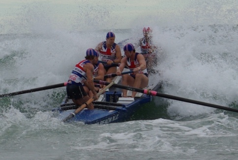 - Piha Women’s crew encounter big waves. Photo Mark Taylor Waikato Times, supplied PSLSC