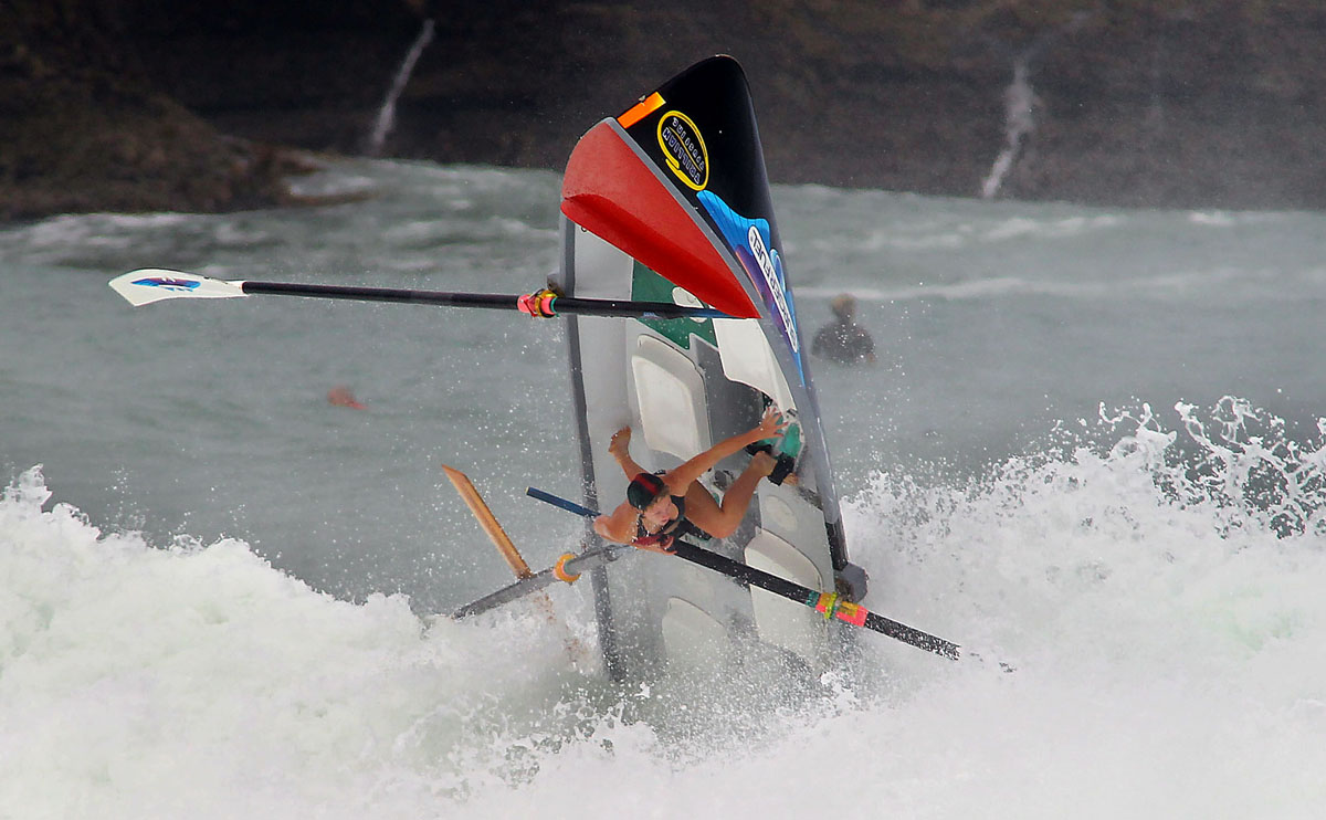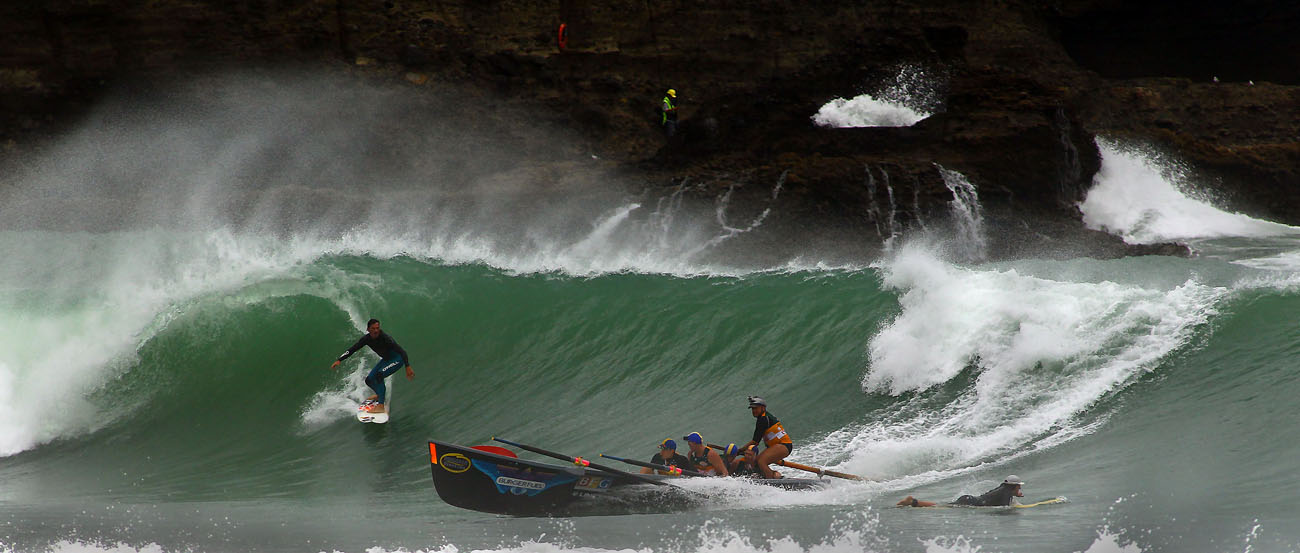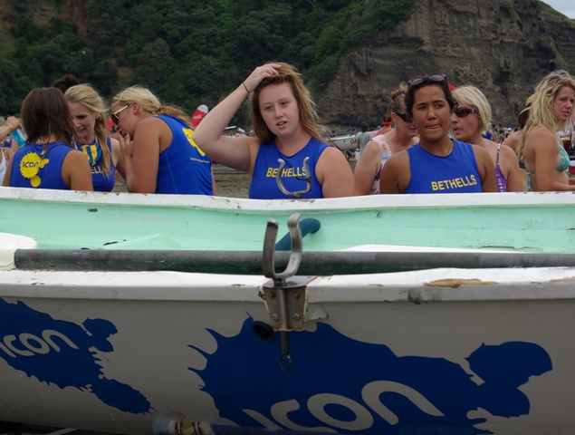 - Piha Women’s crew encounter big waves. Photo Mark Taylor Waikato Times, supplied PSLSC