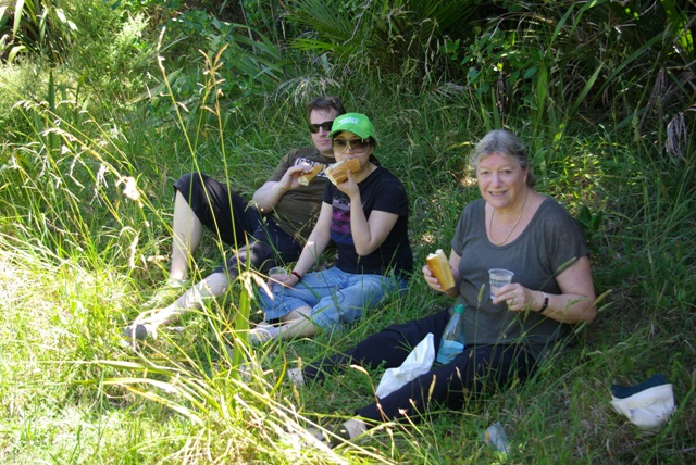 - Morgan, Ting and Sandra enjoy a jambon on Farley Pt, 26 December 2010