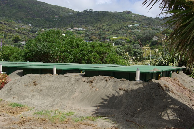 The system replaces the old (though really not so old, but never adequately functioning) Domain and campground system. Now, it incorporates the sewerage from the Piha Bowling Club and the RSA. It is hoped that this will solve problems of pollution in the Piha Lagoon so that those “Do not swim here” signs are a thing of the past.