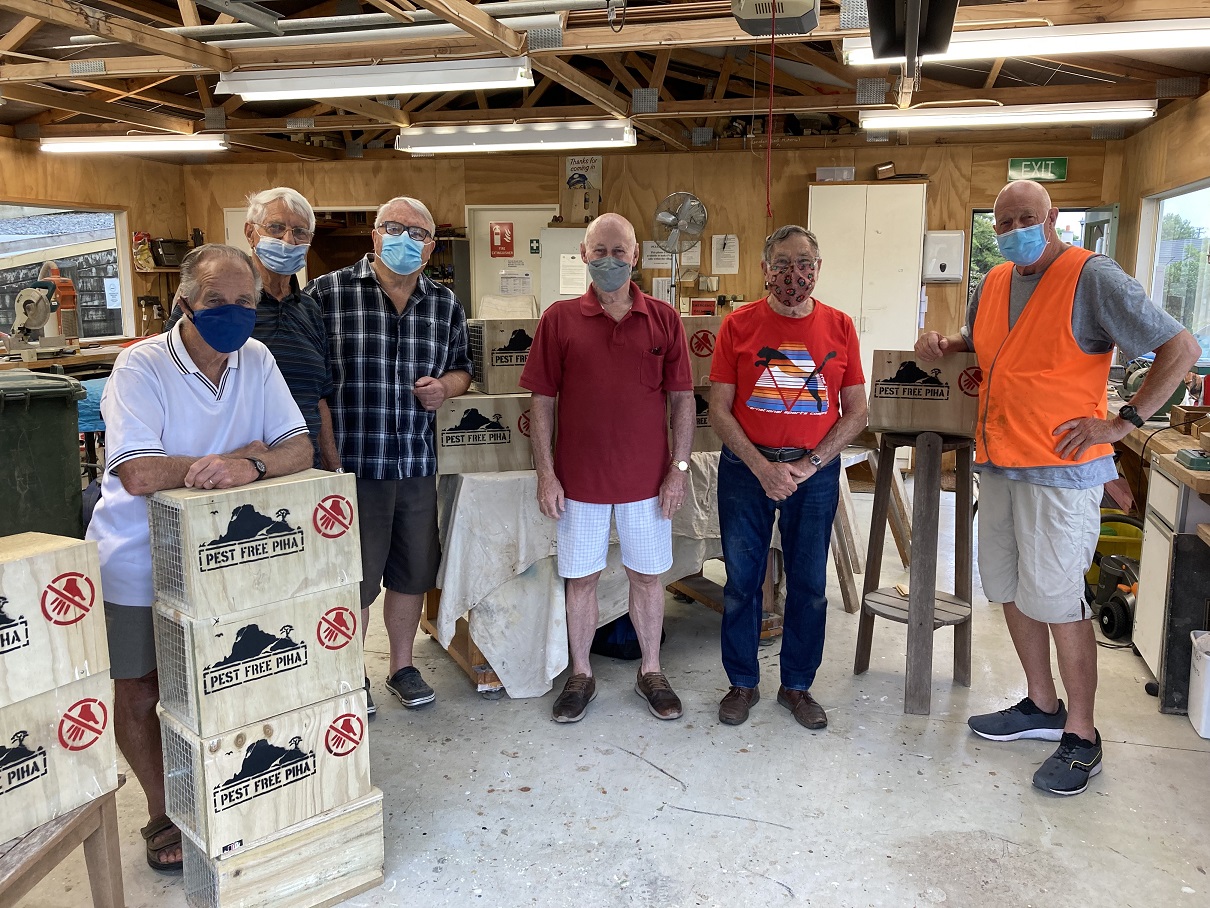 Pest Free Piha has received a small grant from Predator Free New Zealand to tackle rats in the aftermath of Cyclone Gabrielle. There has been an upsurge in rat numbers following the cyclone, possibly a result of rotting food and unattended houses. Traps are made by the Men’s Shed at Pinesong Retirement Village and were given away during an event at Piha Domain in late February. Photo shows the men at Pinesong with rat traps for Pest Free Piha.